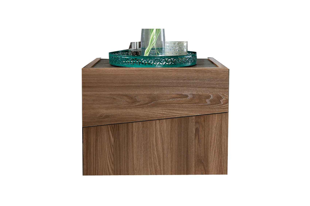 The Storm 2-Drawer Modern Nightstand with Natural Elm Brown Finish combines practical functionality with bold, contemporary design. Its sleek silhouette and unique detailing make it an ideal addition to any modern bedroom, providing both style and utility in one compact piece.